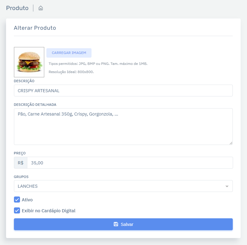 Pronto! Você cadastrou um produto no cardápio digital.