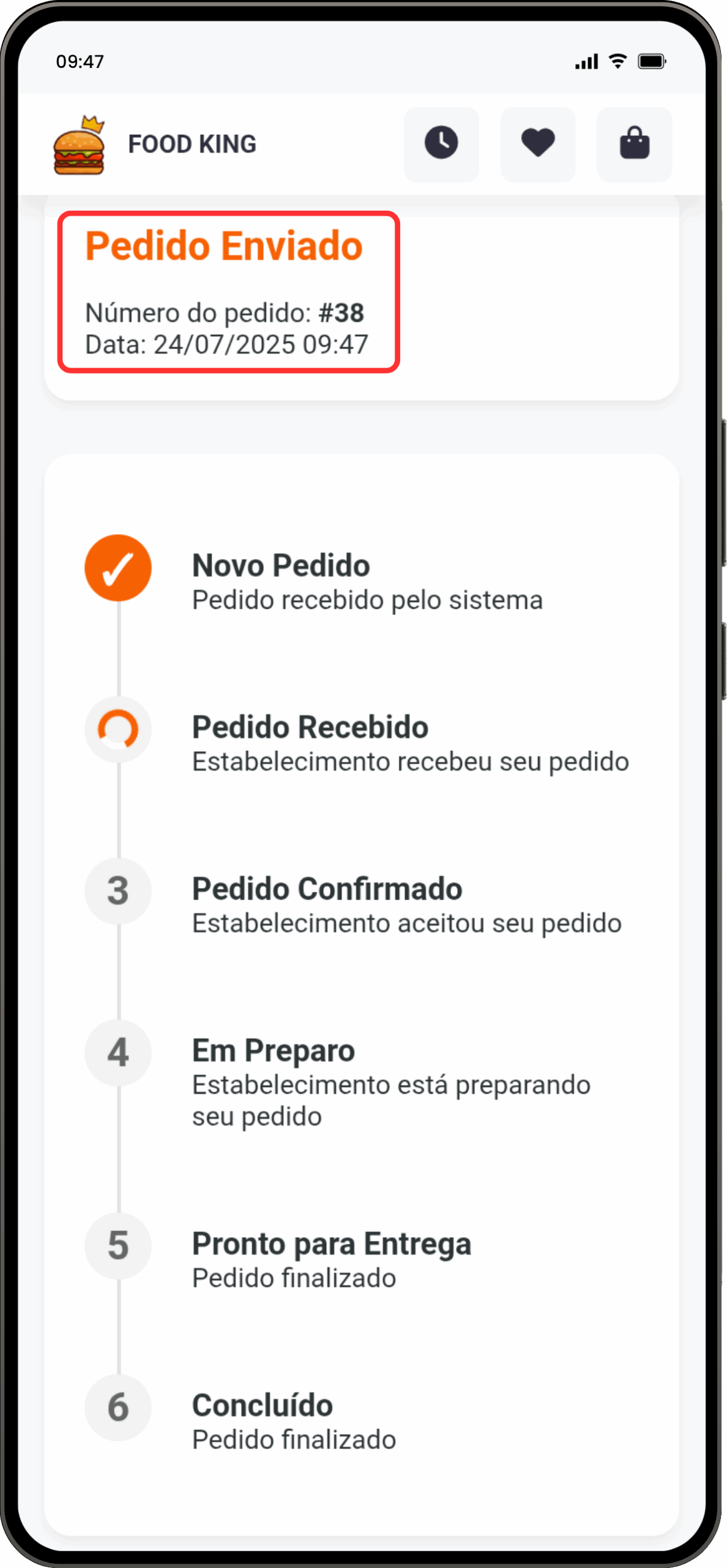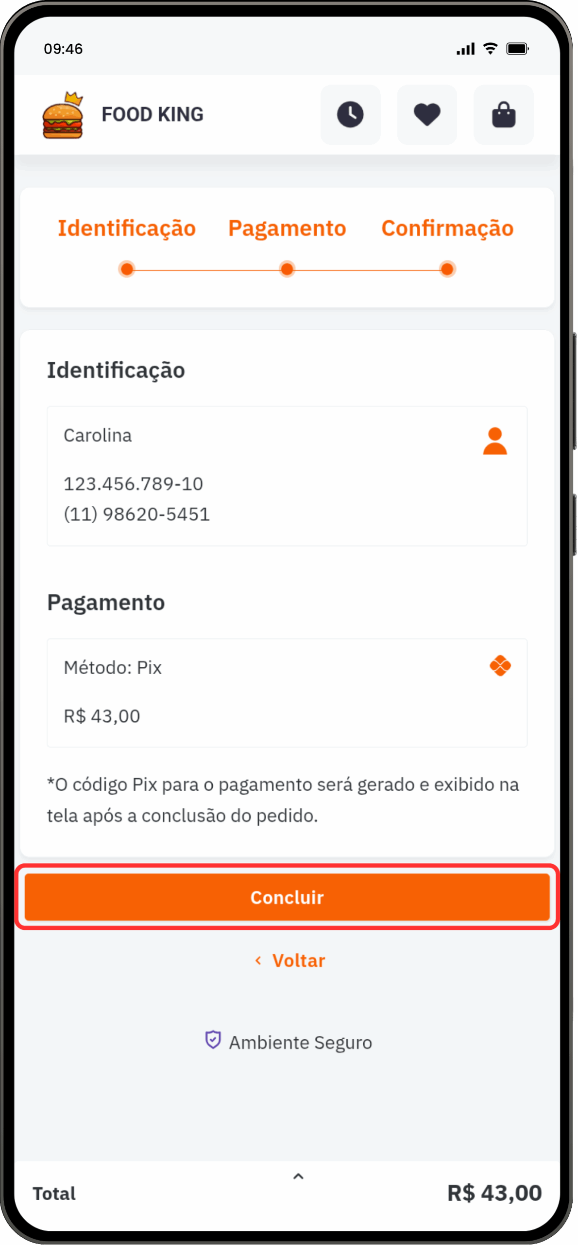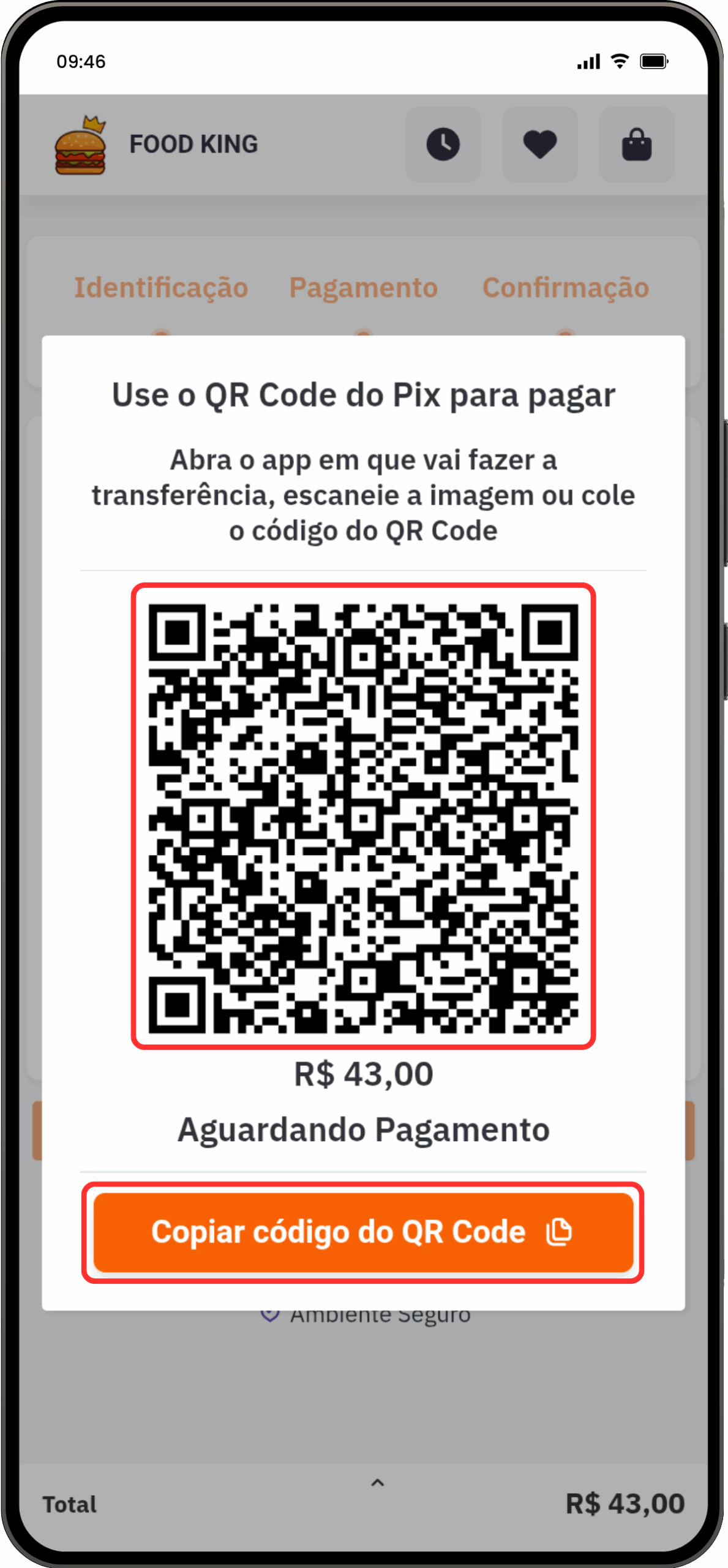 3- Finalize o pagamento no app do seu banco. Após a confirmação, a tela atualiza automaticamente e exibe o status do seu pedido.