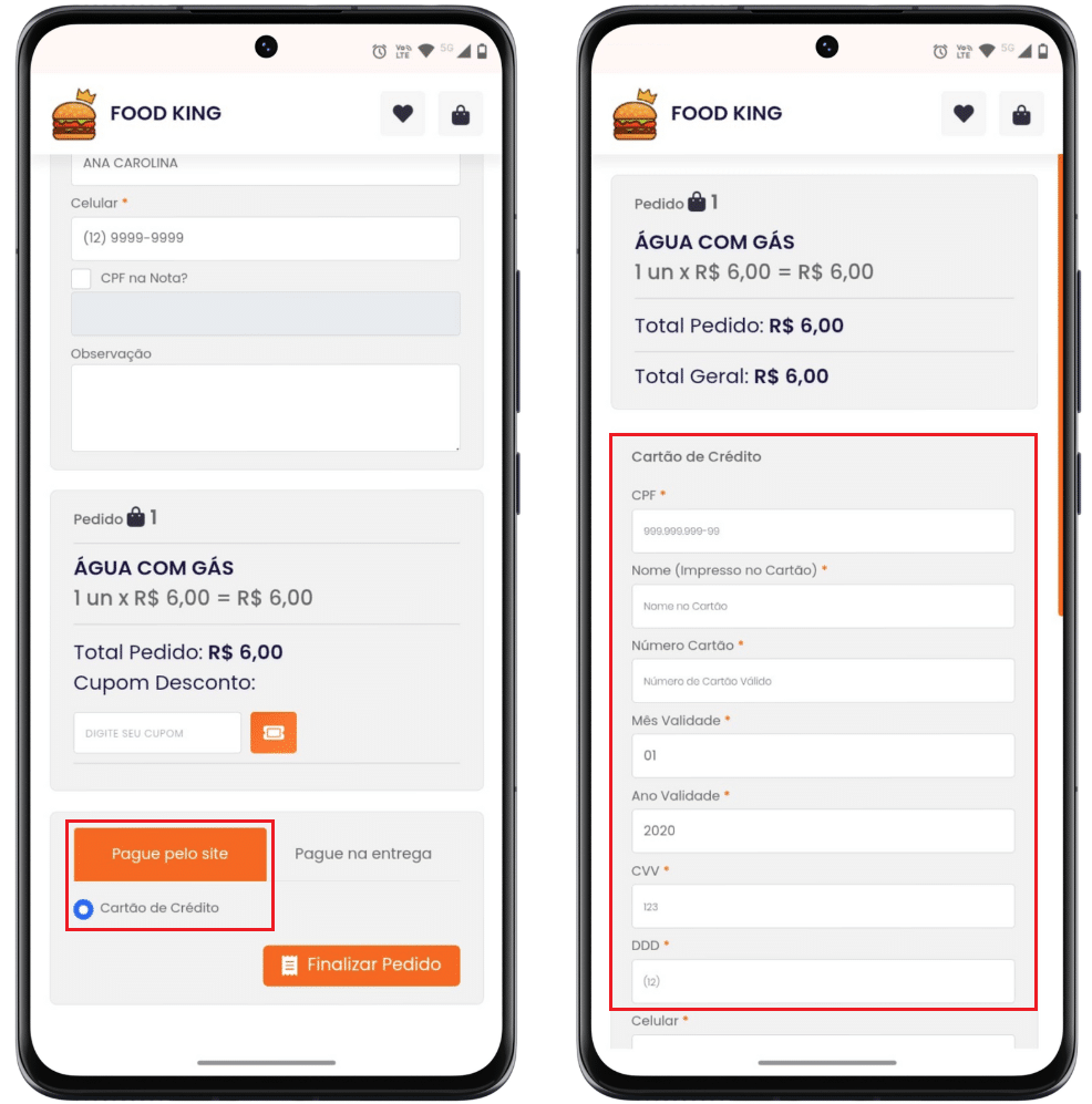 1- Na tela de Finalizar Pedido, selecione Pague pelo site via Cartão de Crédito. Em seguida, preencha os dados do Cartão de Crédito.