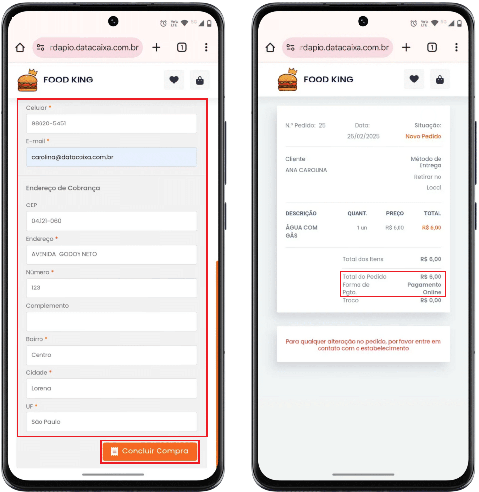 Pronto! O pedido foi concluído e o pagamento foi confirmado com sucesso.