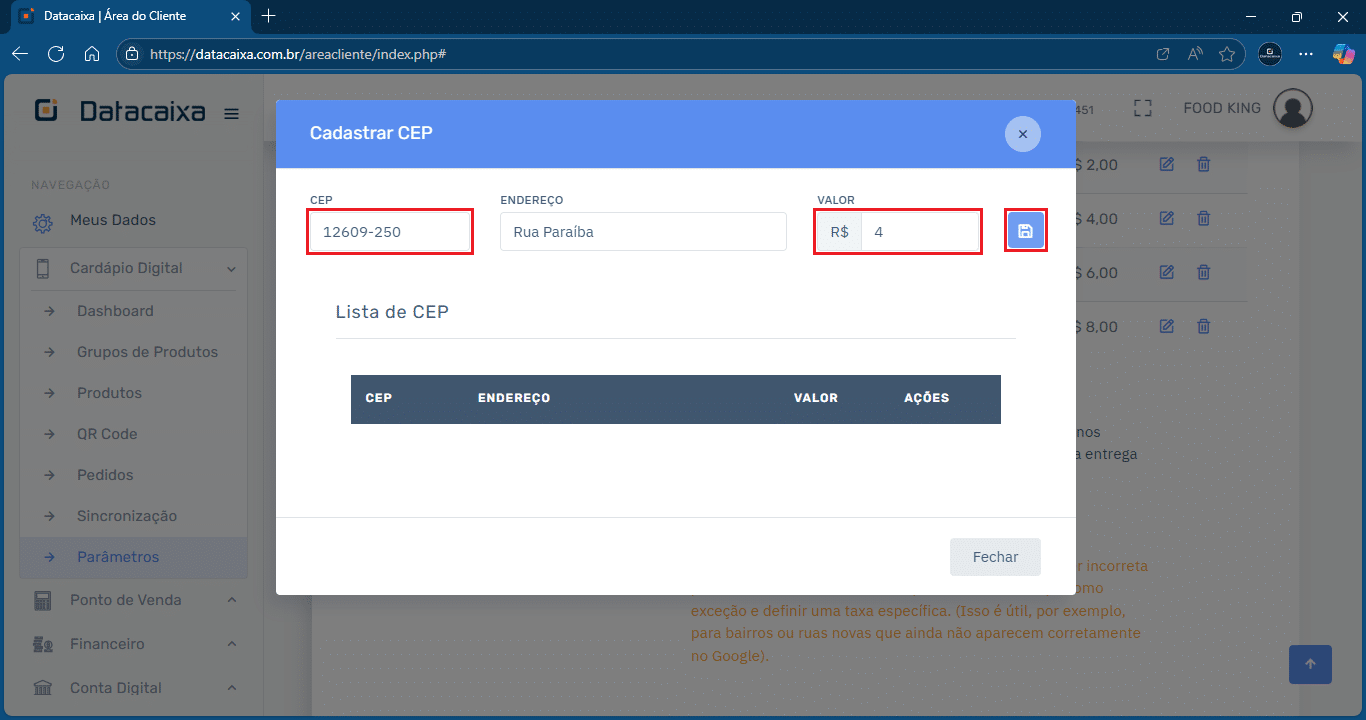 Neste tutorial, você aprenderá como cadastrar um CEP de Exceção no Cardápio Digital.