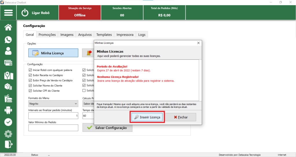 3- Clique em Inserir Licença.