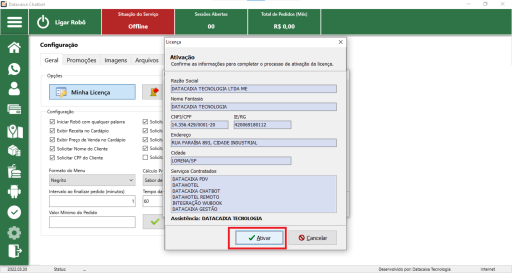 5- Clique em Ativar.