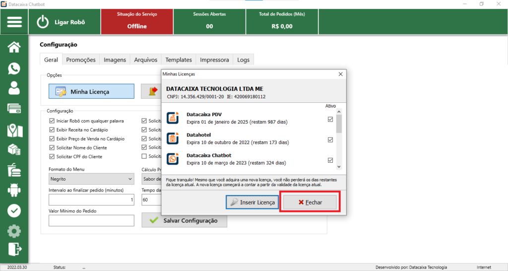 Pronto! Sua licença foi inserida no sistema.