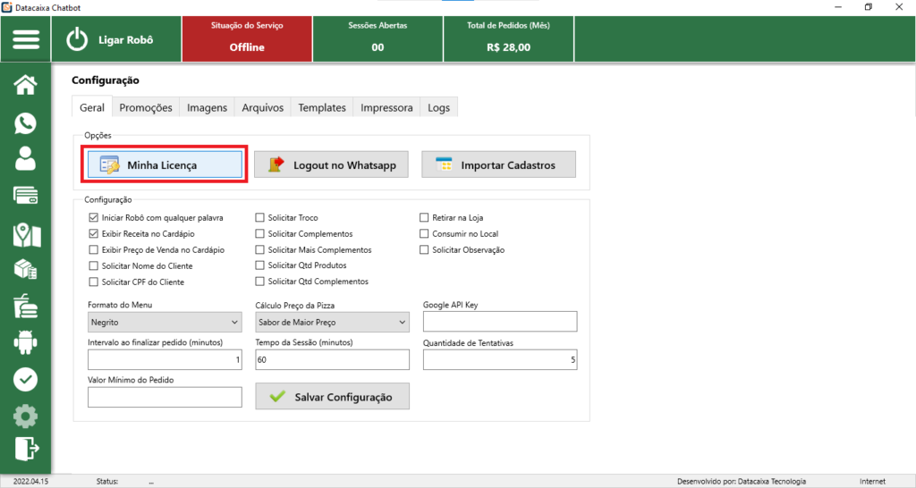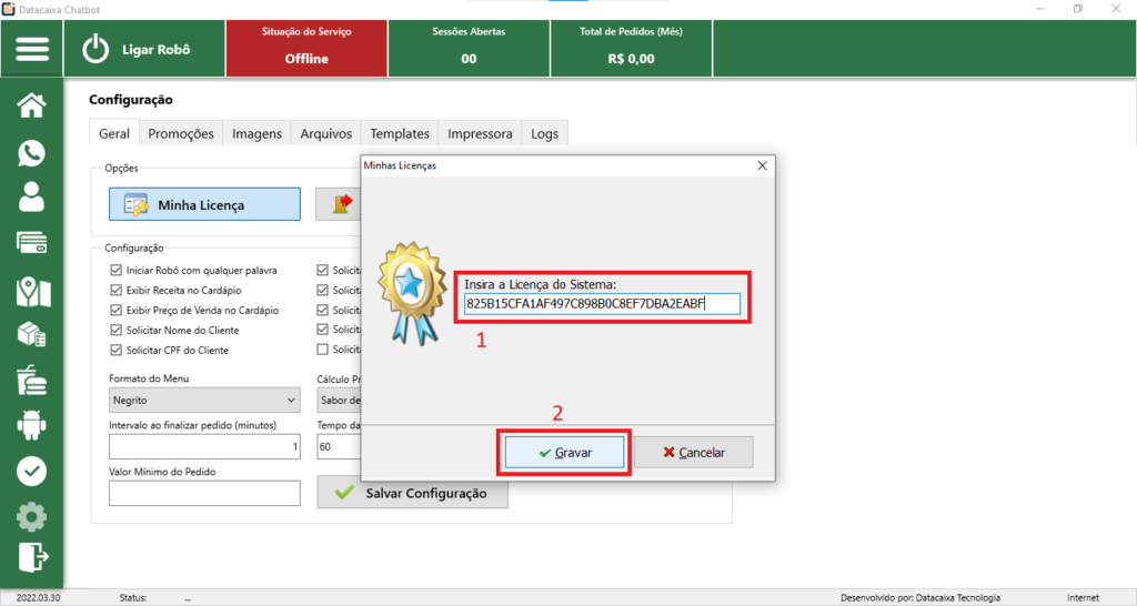 4- Insira a Licença no campo indicado e clique em Gravar.