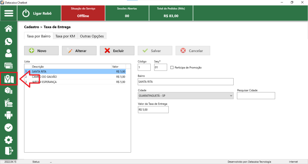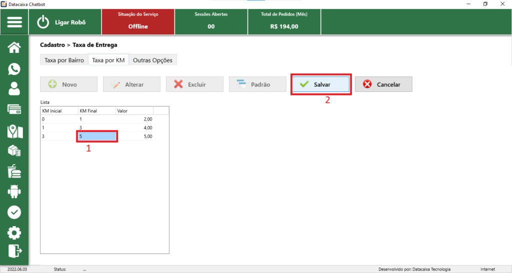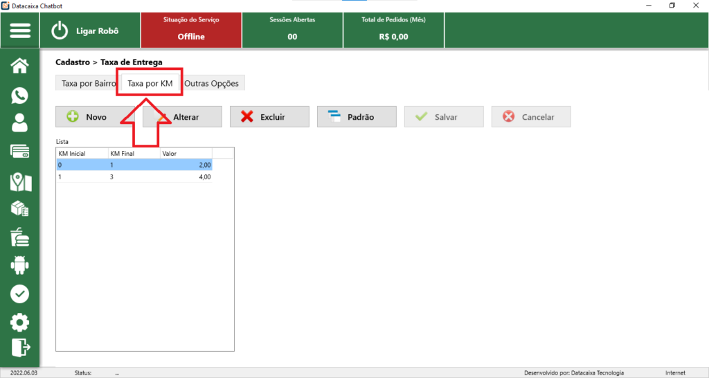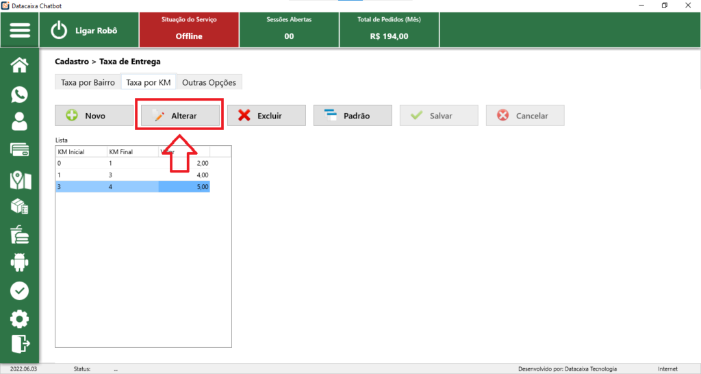 Pronto! Você alterou os dados de uma Taxa por KM no Sistema.