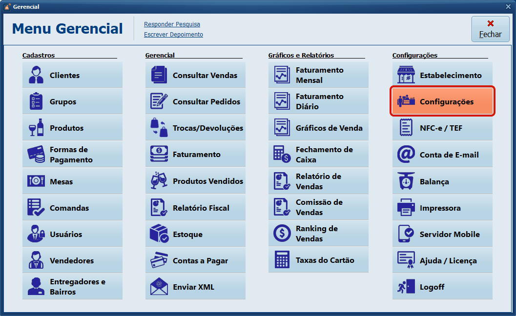 10- Acesse Menu Gerencial > Configurações.