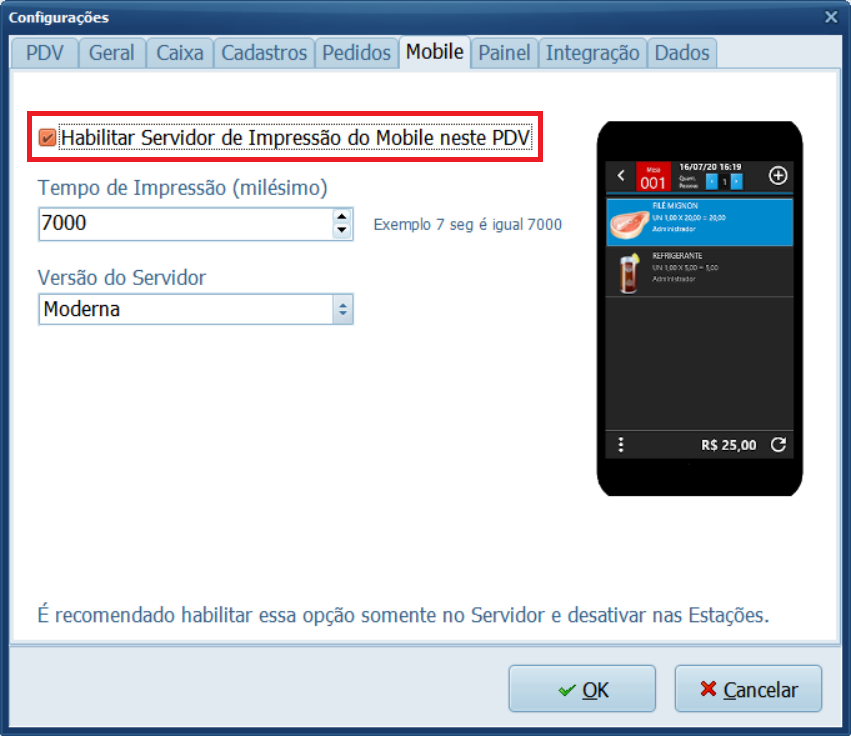 4- Habilite o parâmetro Habilitar Servidor de Impressão do Mobile neste PDV e clique em Gravar.