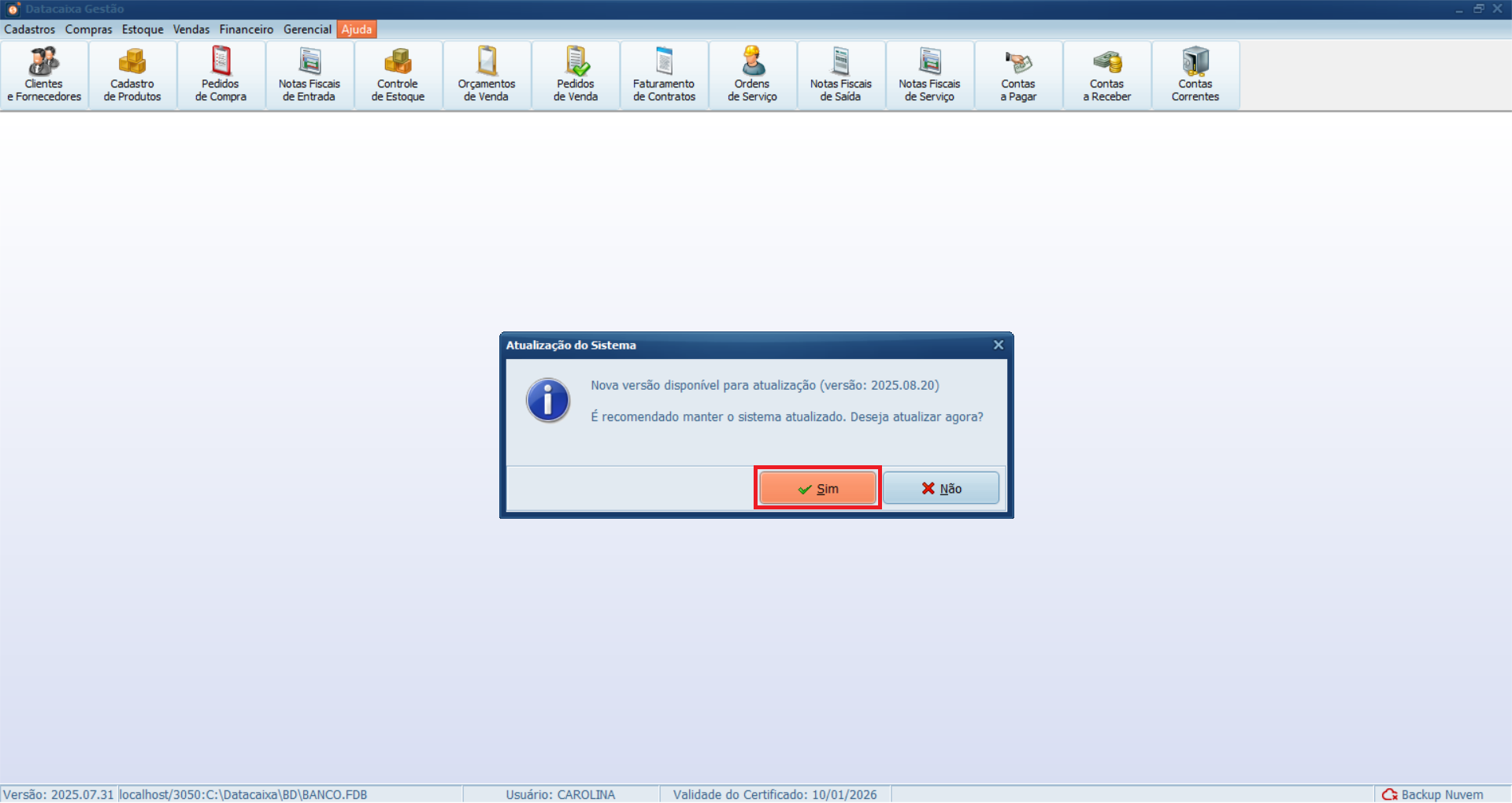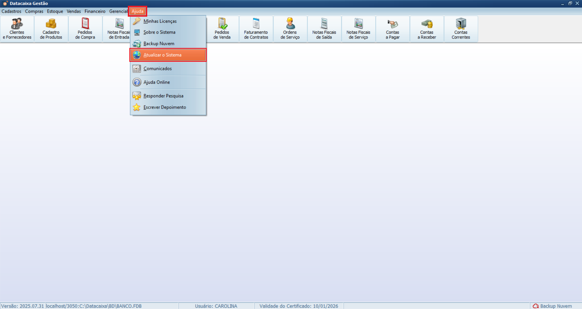 A atualização do Sistema Datacaixa Gestão mantém todos os recursos e correções em dia, garantindo operação estável e confiável. Nesse processo, o Sistema Datacaixa PDV também é atualizado automaticamente.