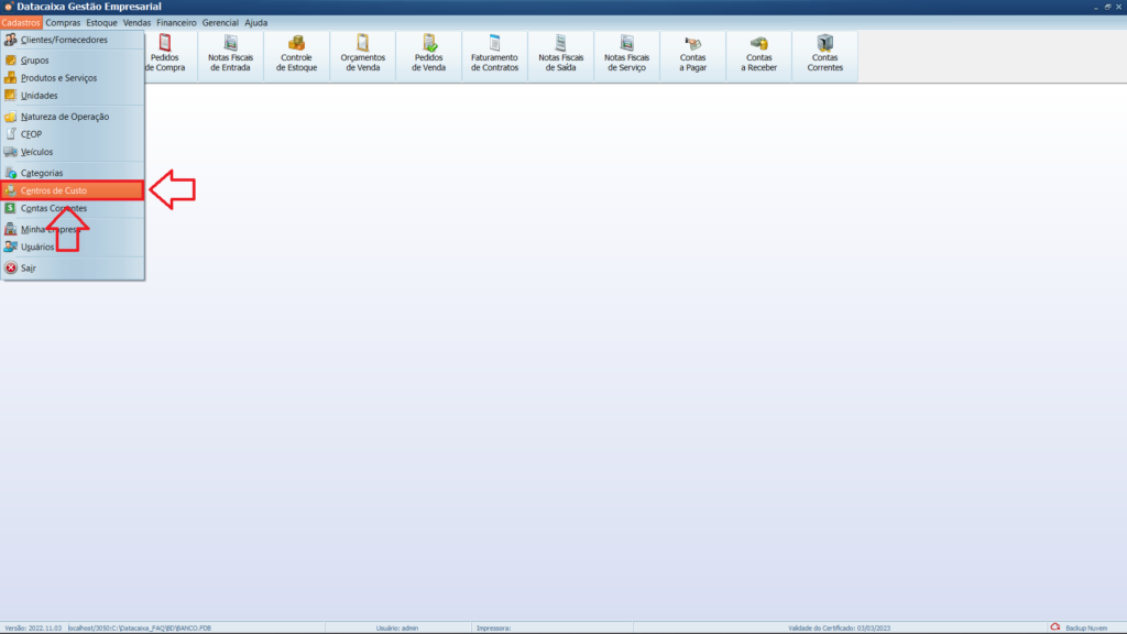 2- Clique em Centros de Custo.