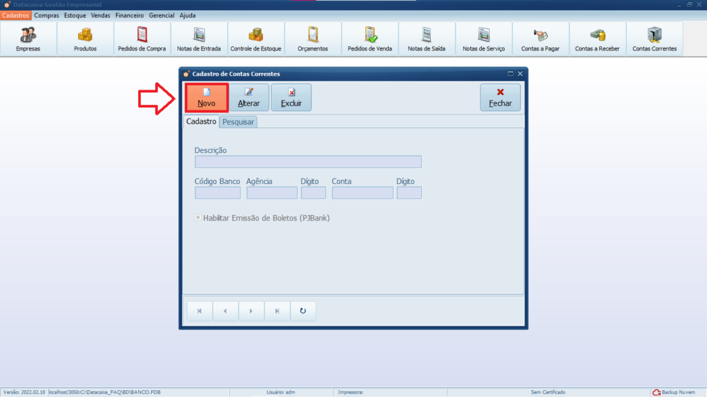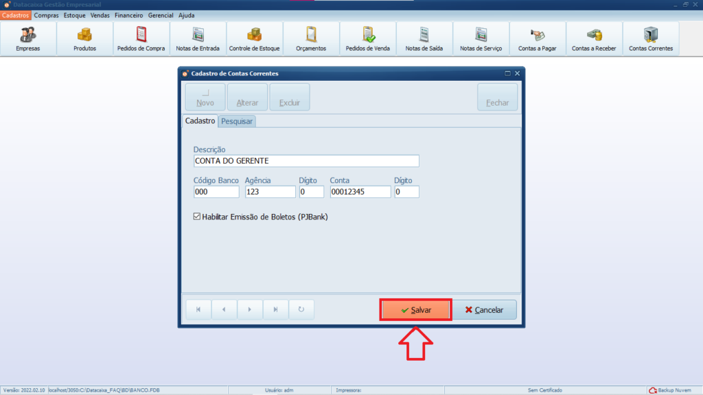 4- Preencha os dados da Conta Corrente e clique em Salvar.