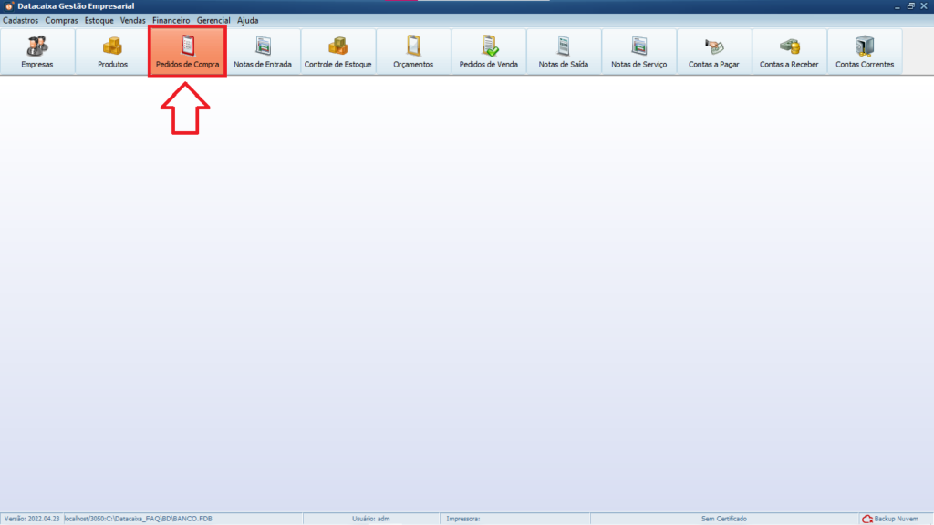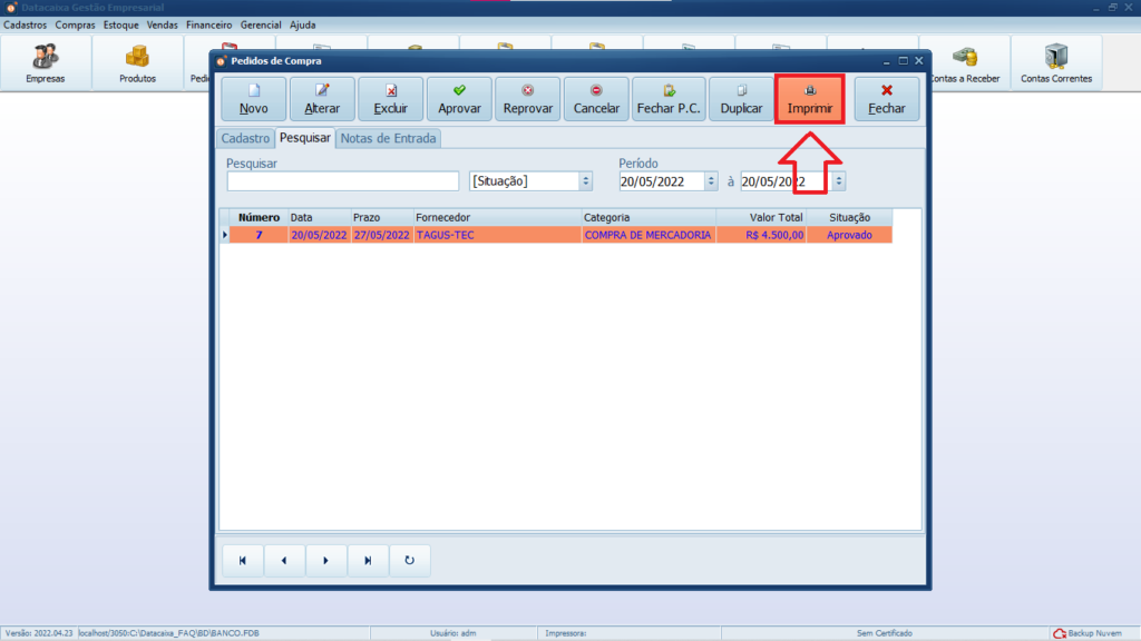 7- Para gerar o Relatório do Pedido de Compra clique em Imprimir.