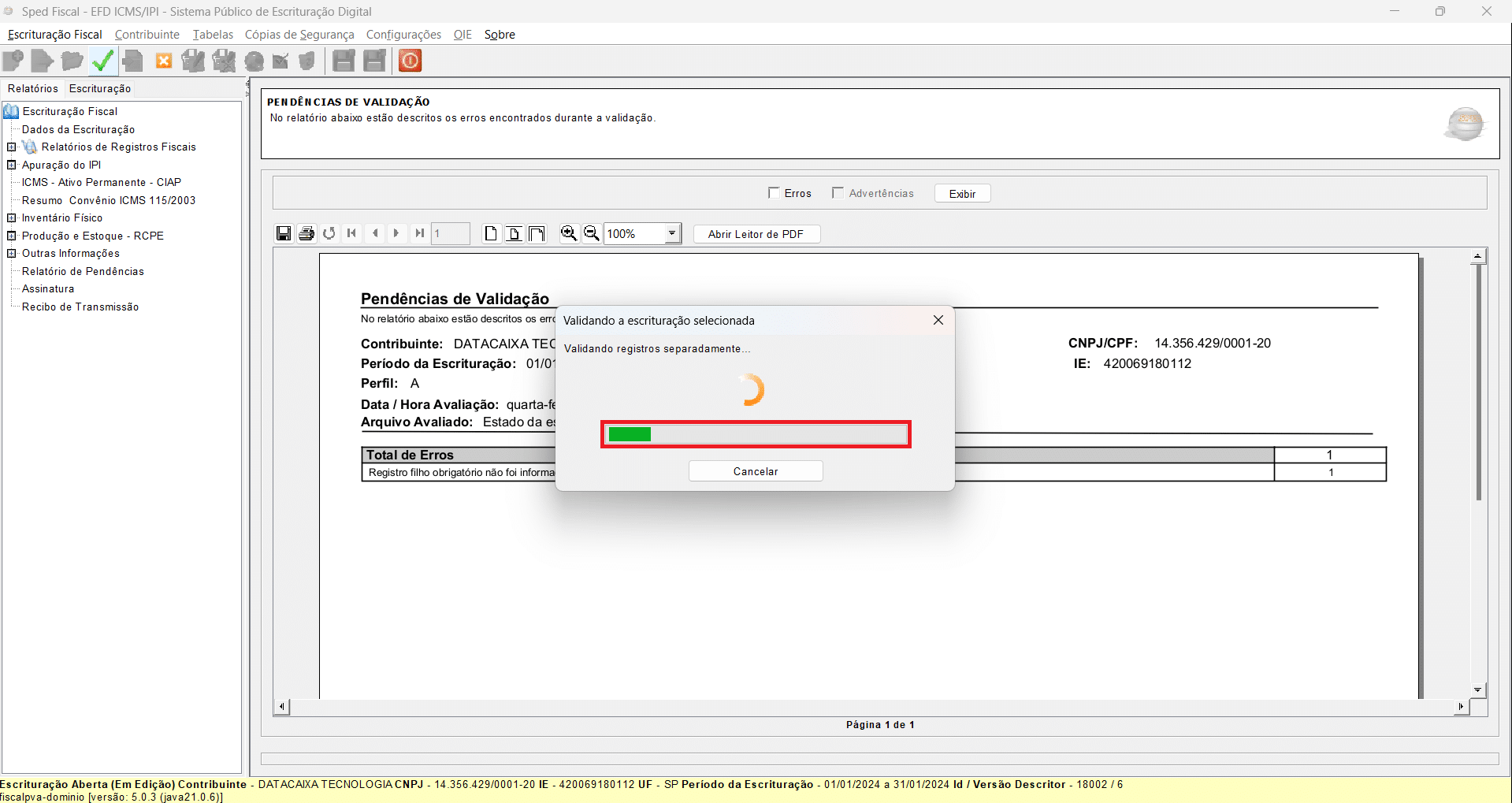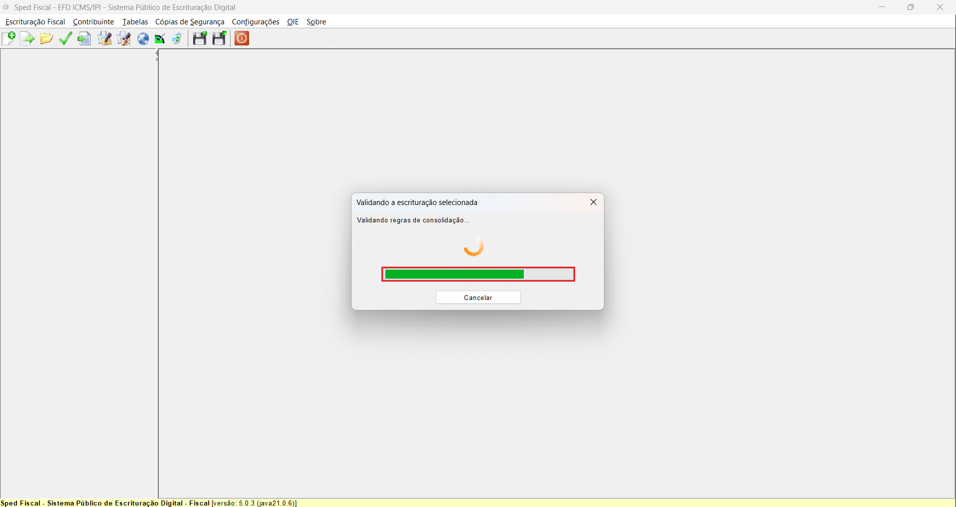 21- Aguarde a validação da escrituração. O tempo de processamento pode variar conforme o período ou a quantidade de informações no arquivo.