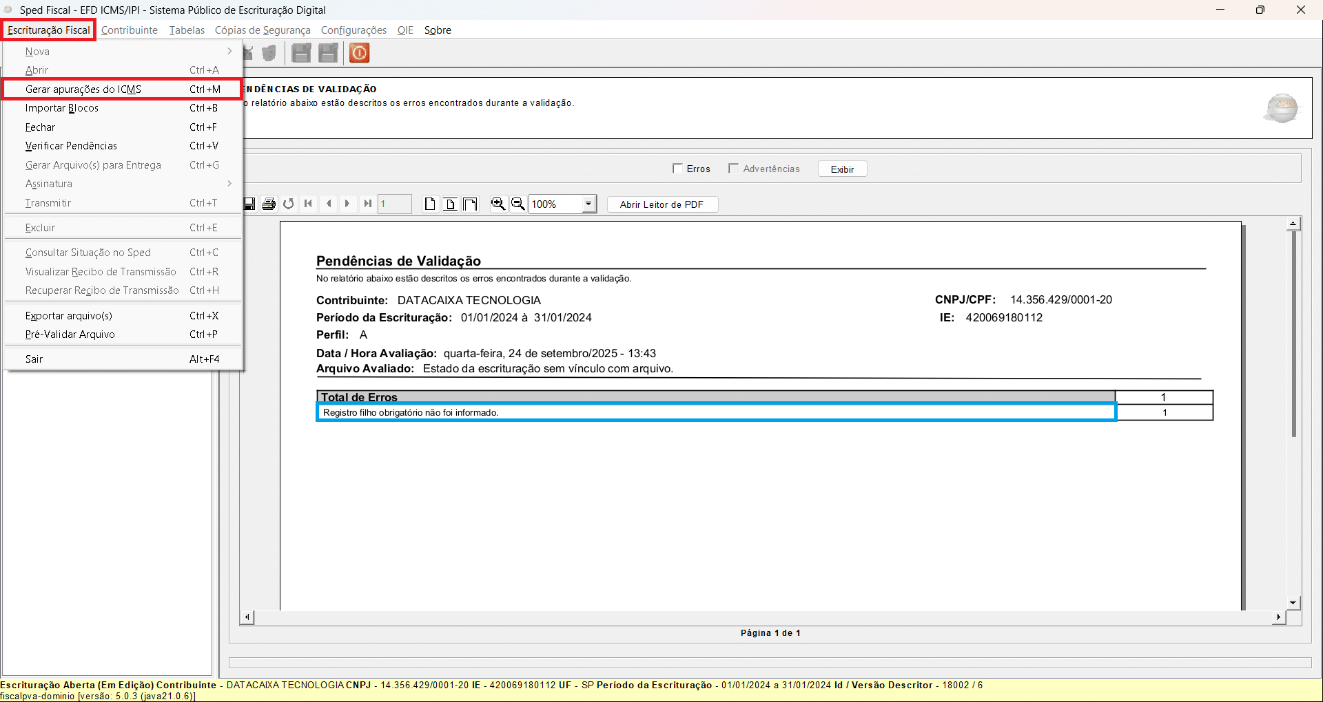 5ª Etapa – Gerar apurações do ICMS pelo Programa Validador
