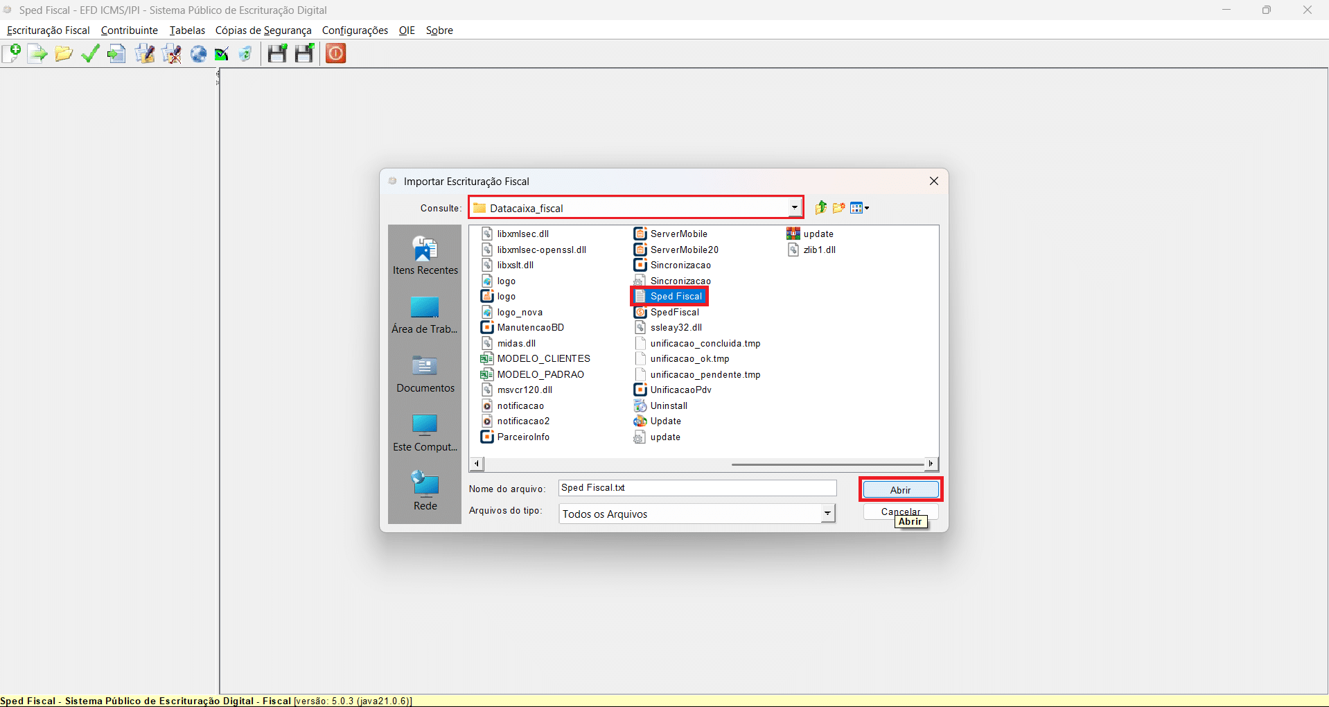 17- Selecione o arquivo Sped Fiscal.txt que você salvou na pasta correspondente > Abrir.