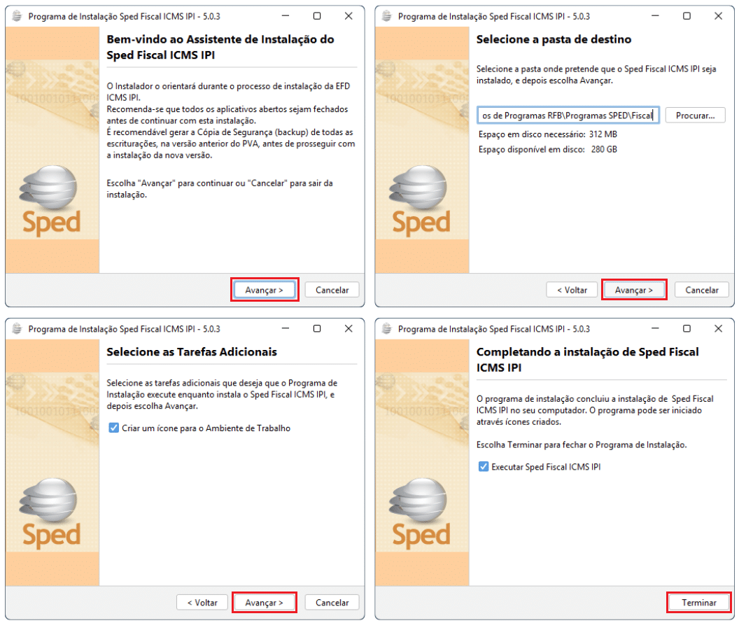 3- Realize a instalação do Sped Fiscal EFD ICMS/IPI avançando os passos até concluir o processo.