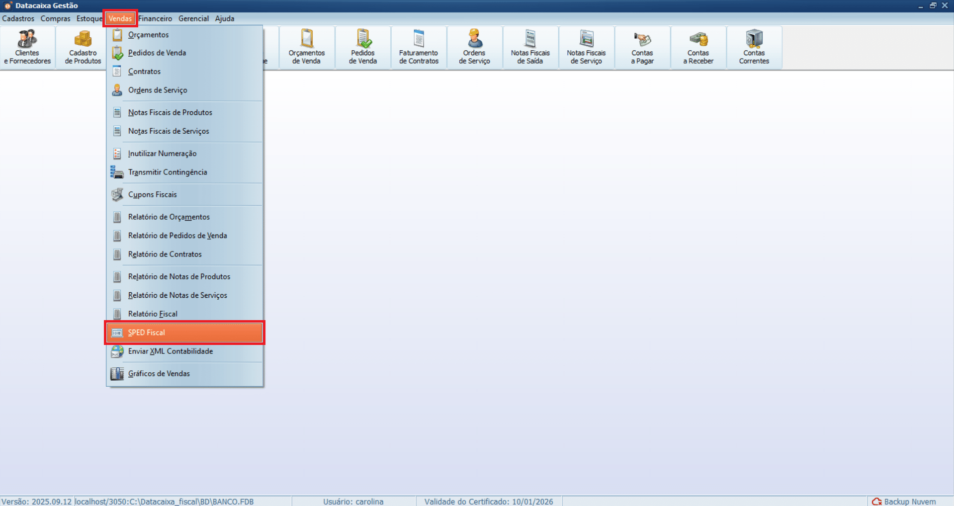 12- Acesse o menu Vendas > SPED Fiscal.