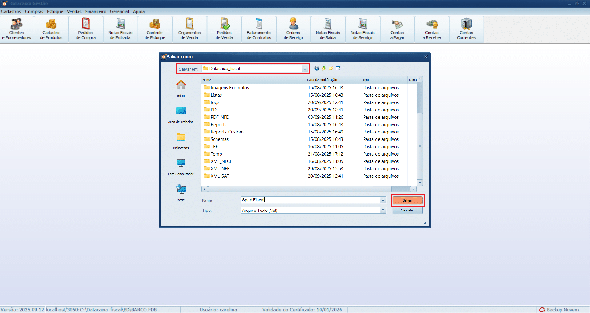 3ª Etapa – Exportar o arquivo Sped Fiscal.txt no Datacaixa Gestão