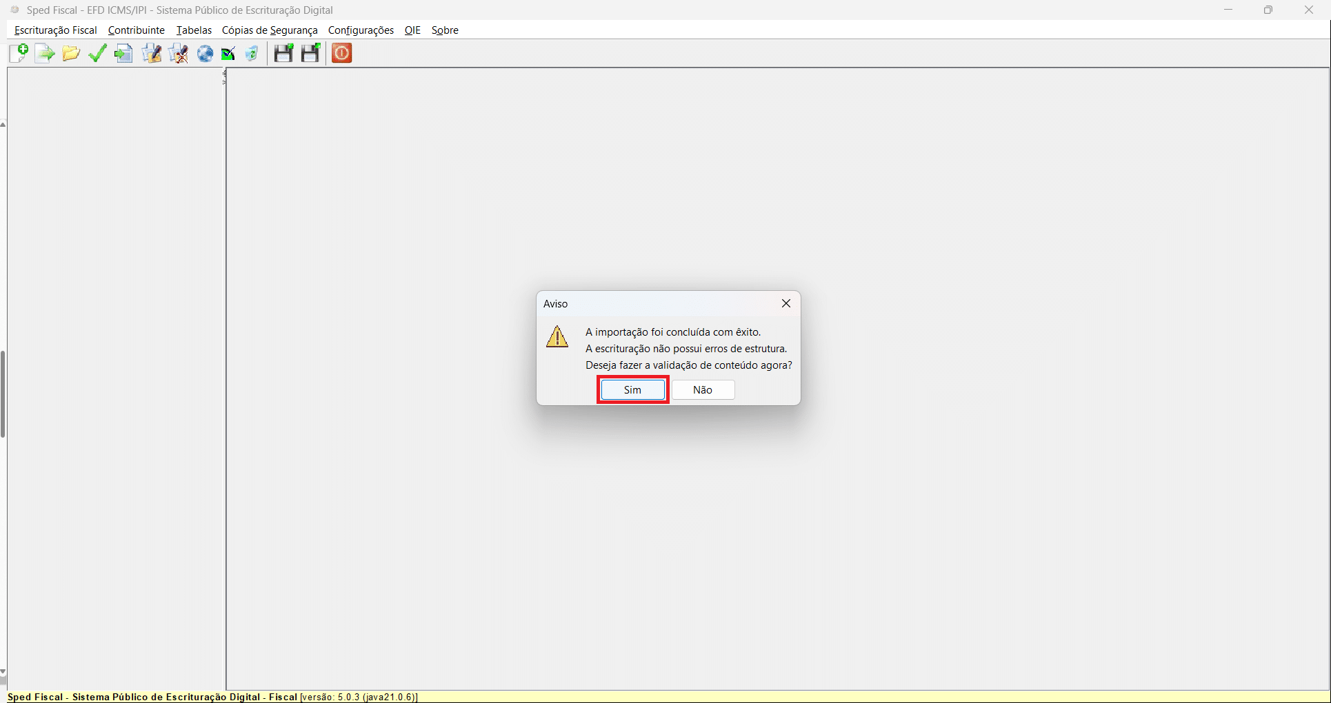 18- A importação foi concluída com êxito. Clique em Sim para fazer a validação de conteúdo.