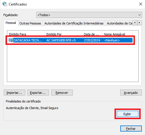 3- Selecione o certificado que deseja verificar e clique em Exibir.