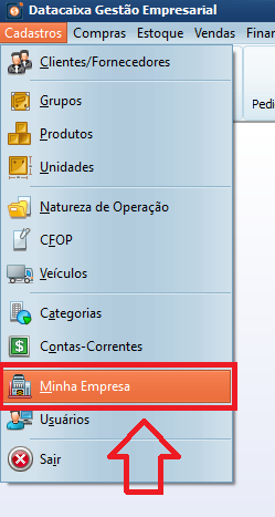 8- Com o Datacaixa Gestão aberto, acesse o menu Cadastros > Minha Empresa.