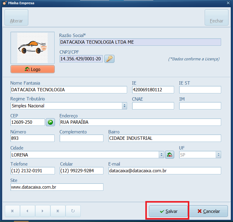 Pronto! Seu logotipo foi inserido no Sistema.