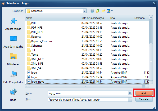 11- Selecione a nova logo e clique em Abrir.