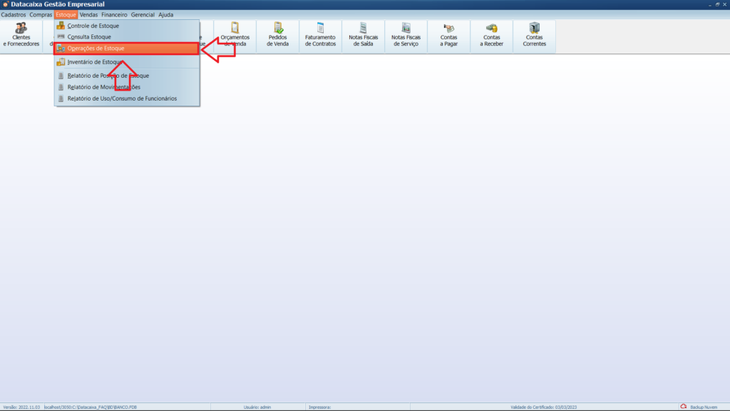 2- Clique em Operações de Estoque.