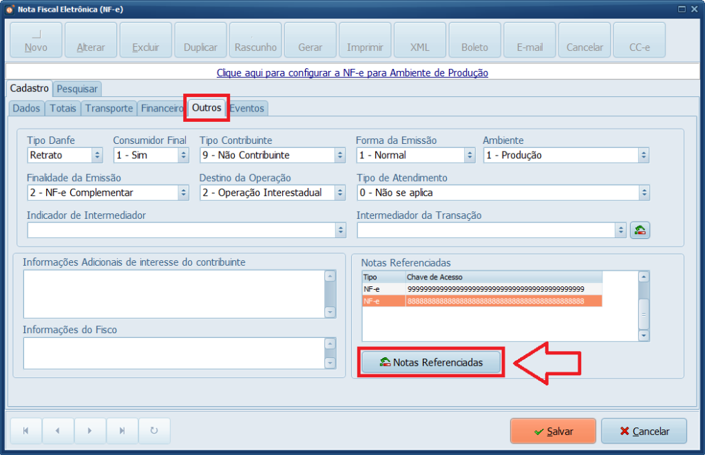 Se necessário uma NF-e Complementar para outras chaves de acesso, crie uma nova NF-e complementar para cada chave de acesso.