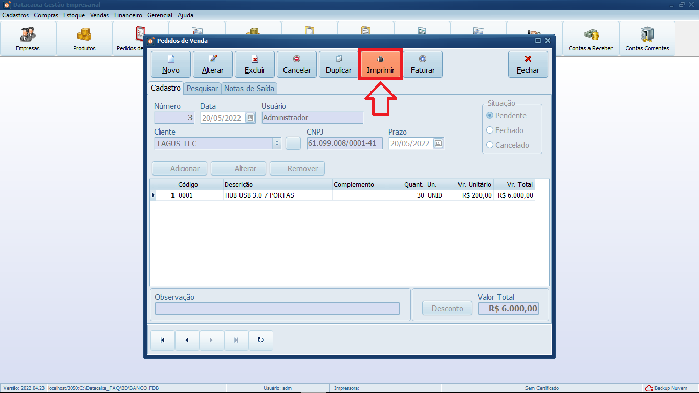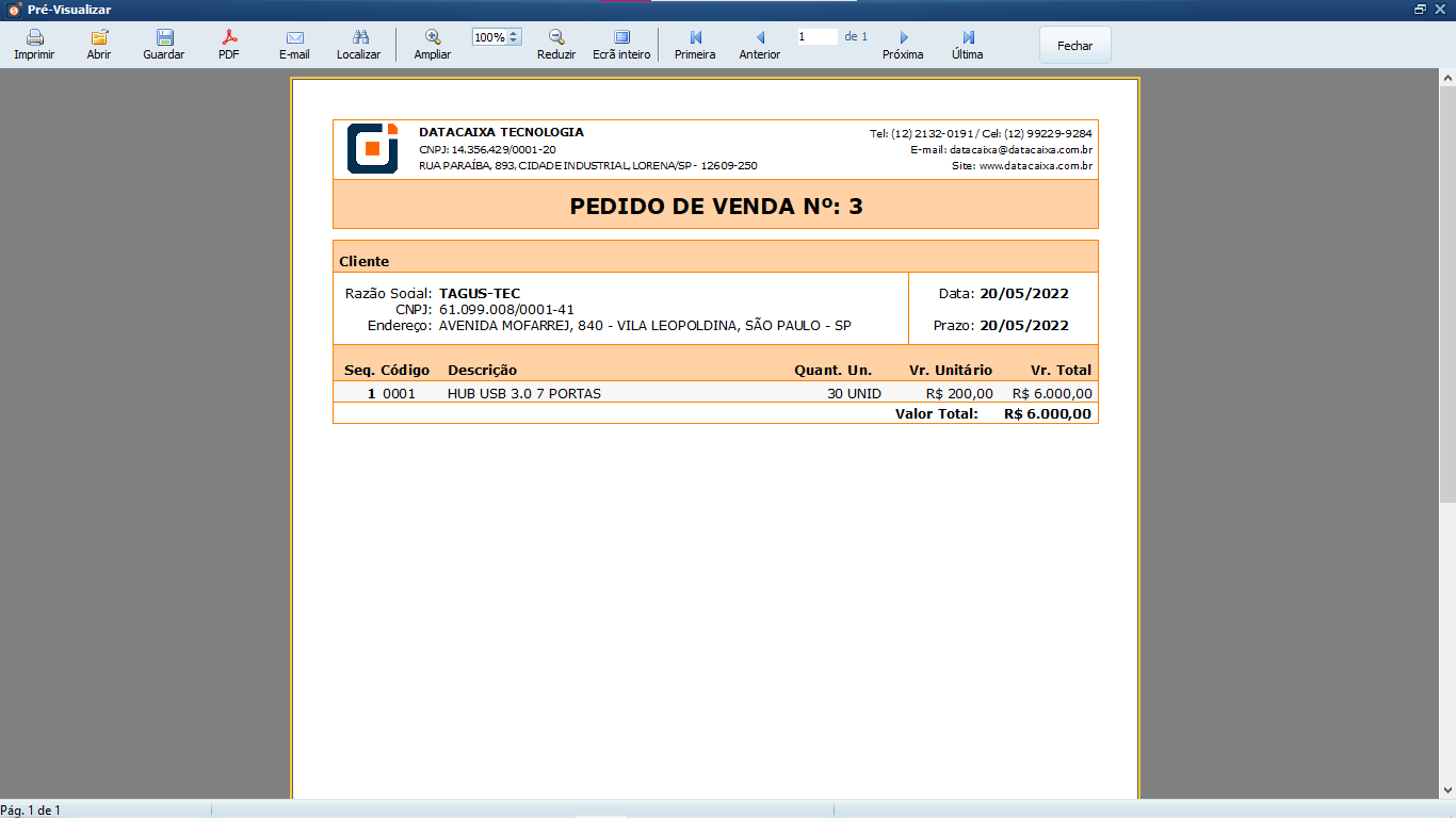 7- Para gerar o Relatório do Pedido de Venda clique em Imprimir.