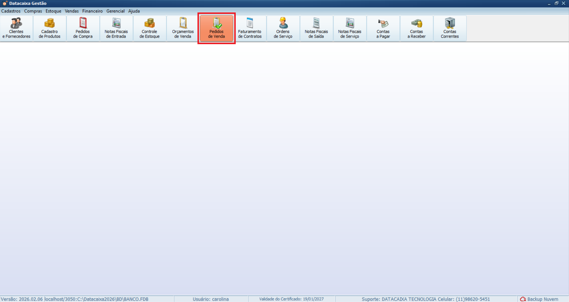 1- Acesse o menu Pedidos de Venda no sistema Gestão.