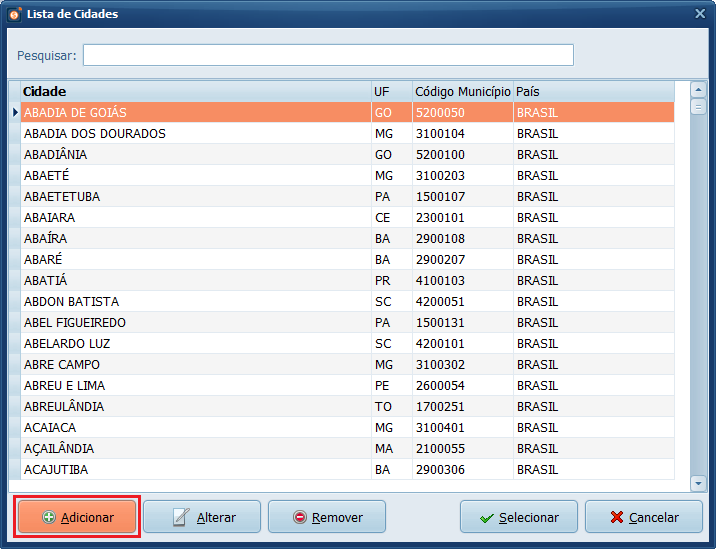 🔹Mantenha o campo Código Cidade em branco.