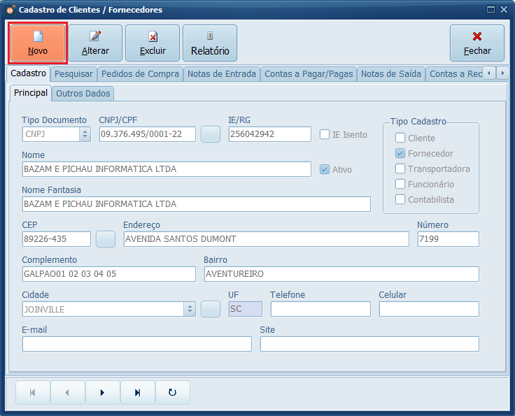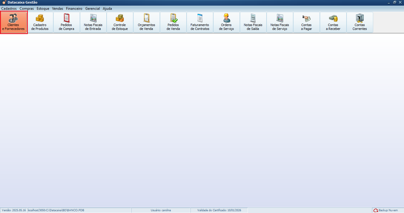 1- Acesse Clientes e Fornecedores.