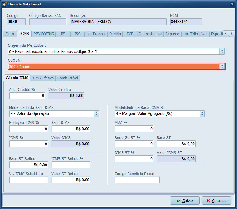 9- Clique na aba ICMS e preencha o CSOSN ou CST.