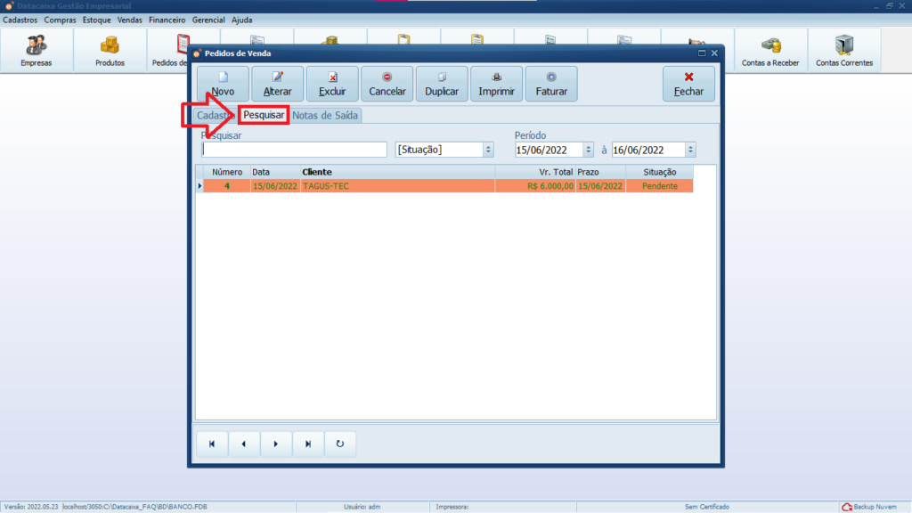 2- Clique em Pesquisar e selecione o Pedido de Venda que deseja.