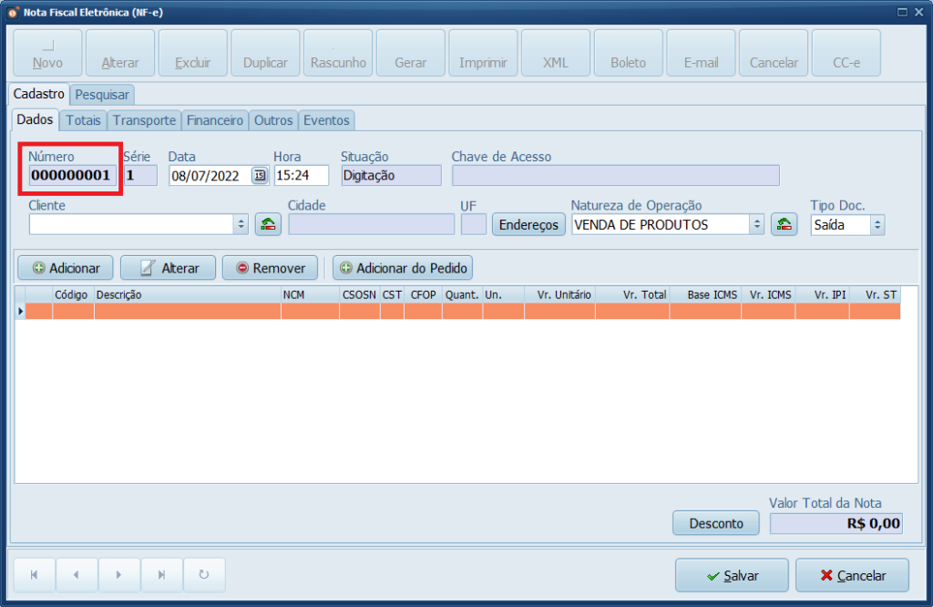 3- Ajuste a Numeração caso já tenha emitido NF-e antes em seu CNPJ, caso seja a primeira Nota mantenha o padrão.