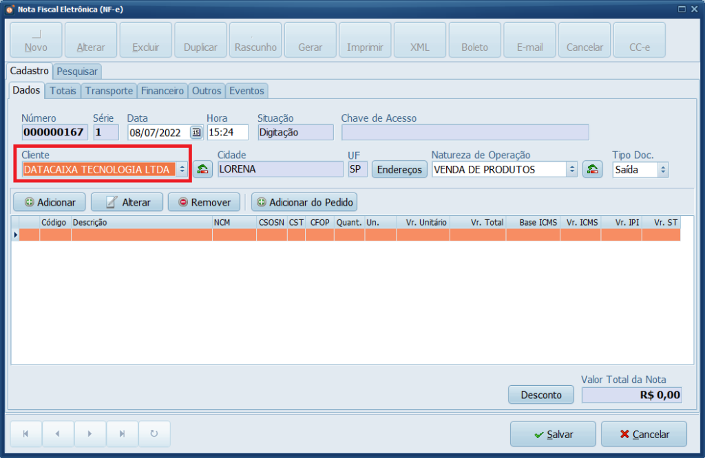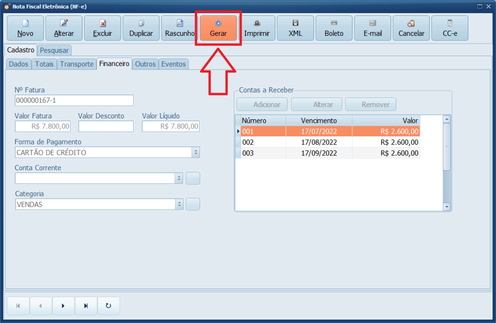 Pronto! Você gerou uma nota fiscal eletrônica no sistema.