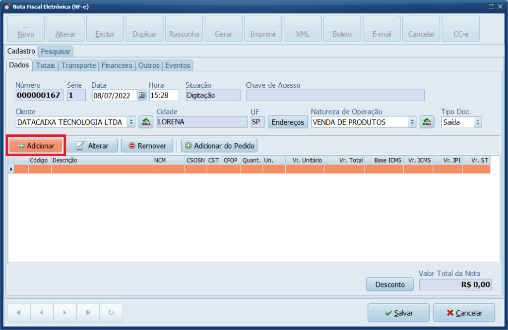 6- Clique em Adicionar para inserir os produtos.