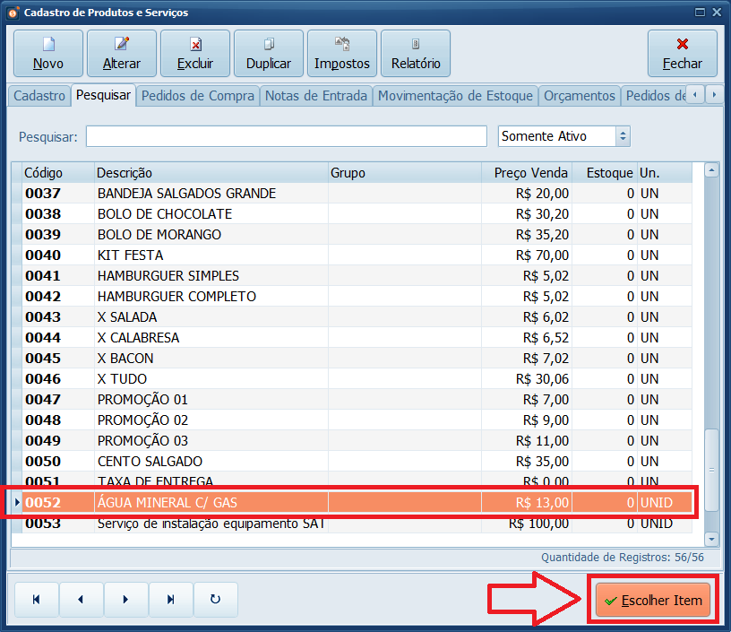 7- Selecione o Produto e clique em Escolher Item.