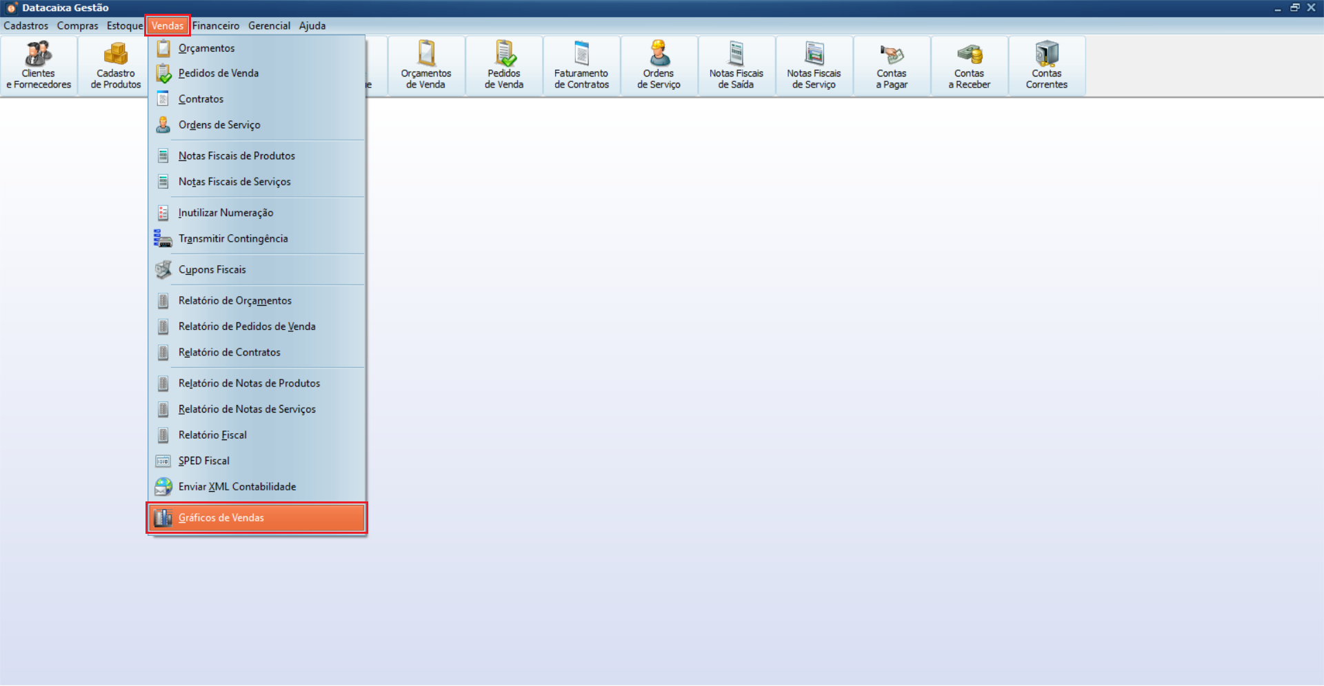 1- Acesse o menu Vendas > Gráficos de Vendas.