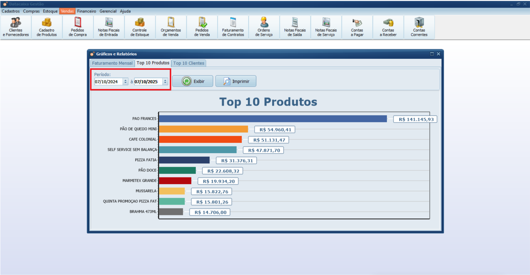 Como gerar o Gráfico Top 10 Produtos no Gestão