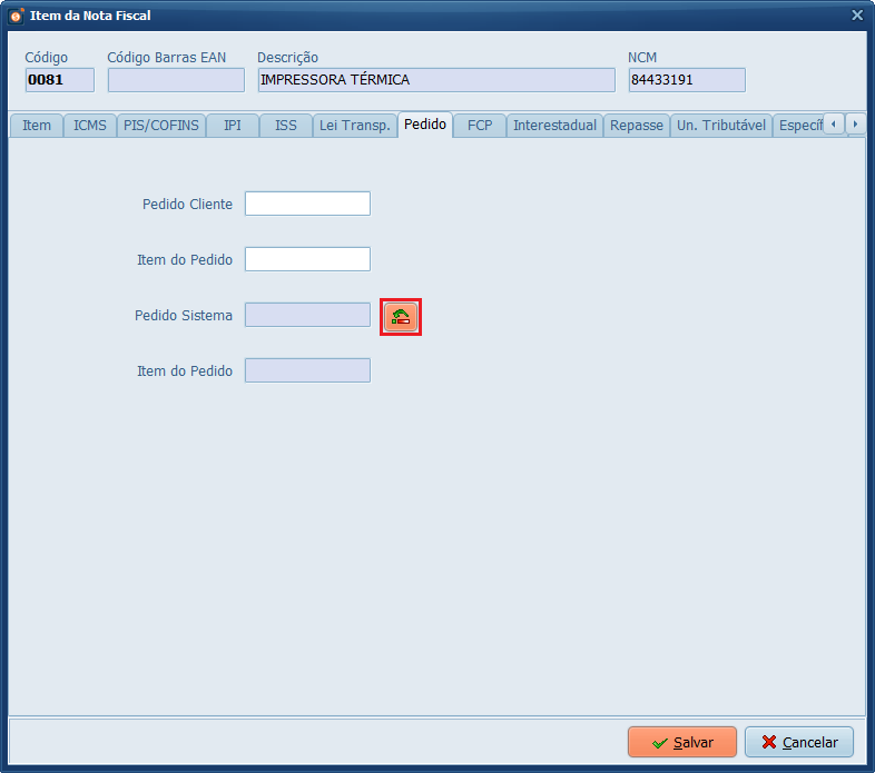 3- Clique no Botão para selecionar o Pedido do Sistema.