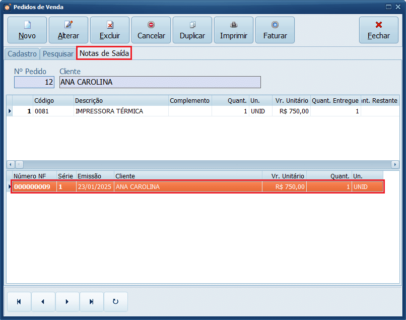 Pronto! A NF-e foi vinculada ao Pedido de Venda para otimizar seu controle interno.