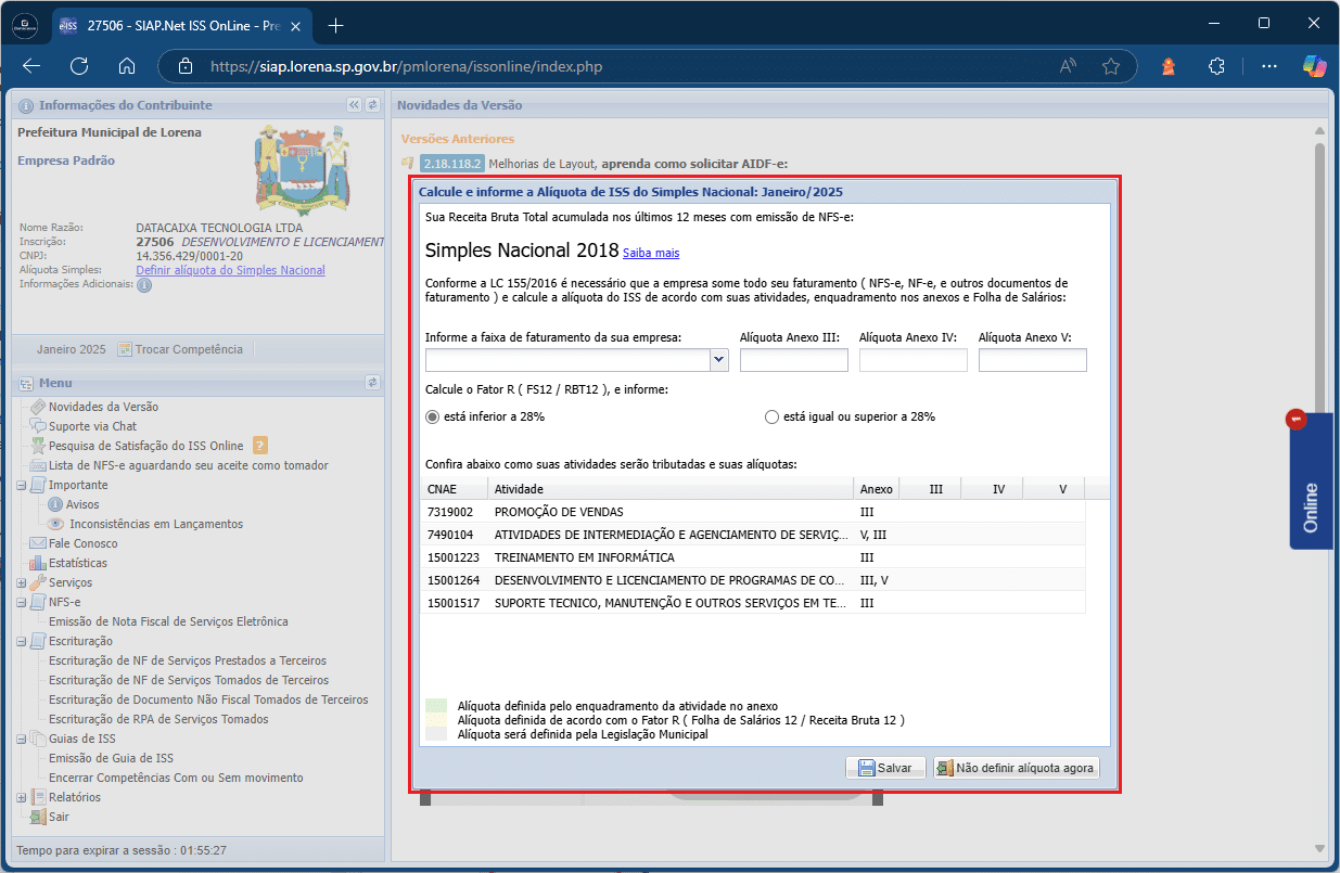 Após informar a Alíquota no Portal da Prefeitura da sua cidade, tente gerar novamente a NFS-e no Sistema Datacaixa Gestão.