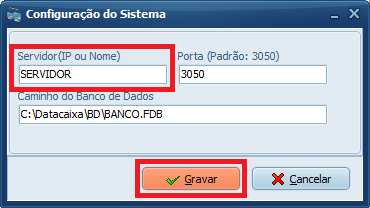 - Caminho: Local do banco de dados no Servidor.