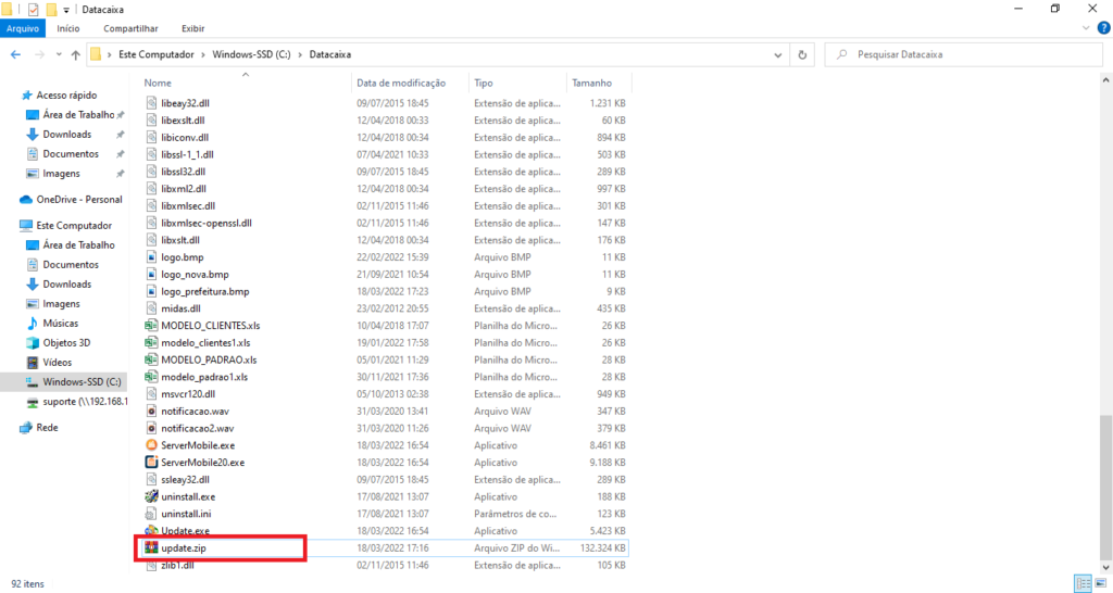 5- Clique Aqui! para baixar o arquivo Update da versão antiga e cole dentro da pasta Datacaixa.