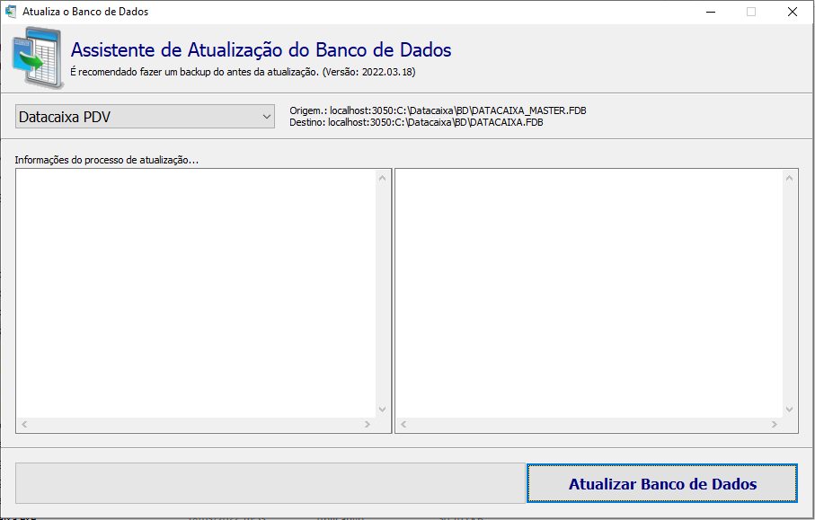 9- Atualize o Banco de Dados para o Datacaixa PDV e depois para o Datacaixa Gestão.