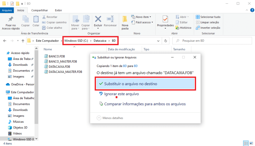 4- Acesse a pasta Datacaixa Oficial > BD > Cole e Substitua o banco.