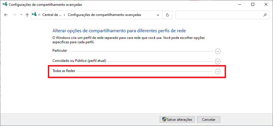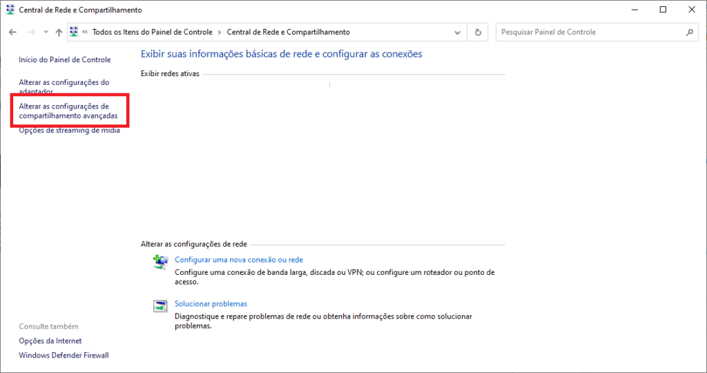 14- Clique em Alterar as configurações de compartilhamento avançadas.