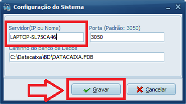 26- Coloque em Servidor o nome do computador Servidor e clique em Gravar.